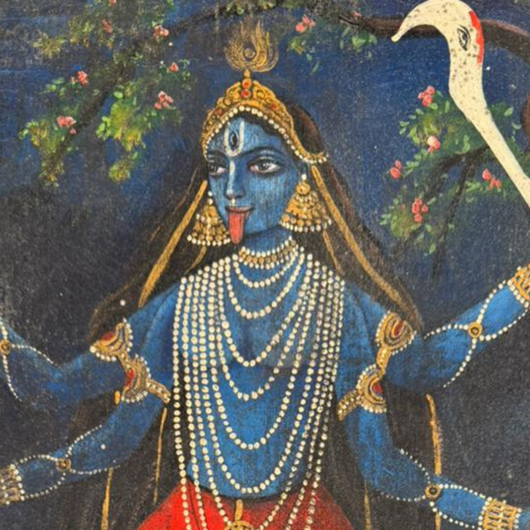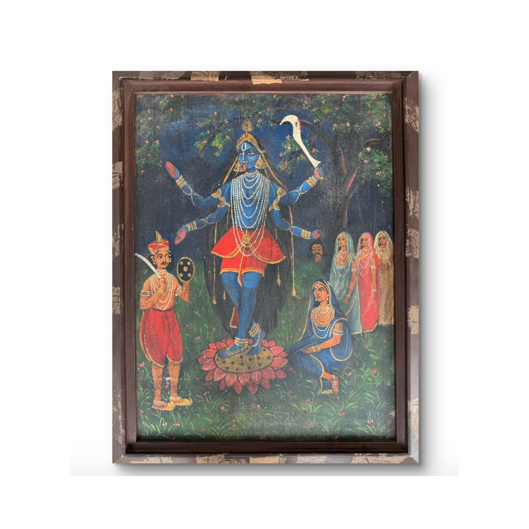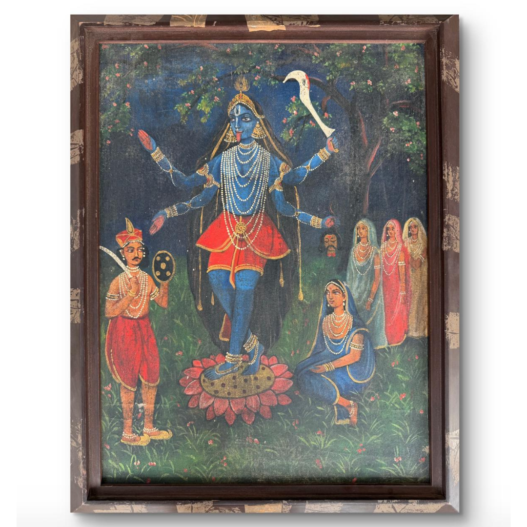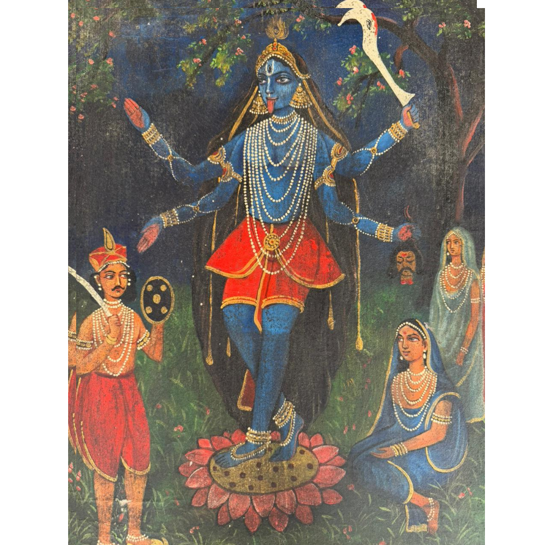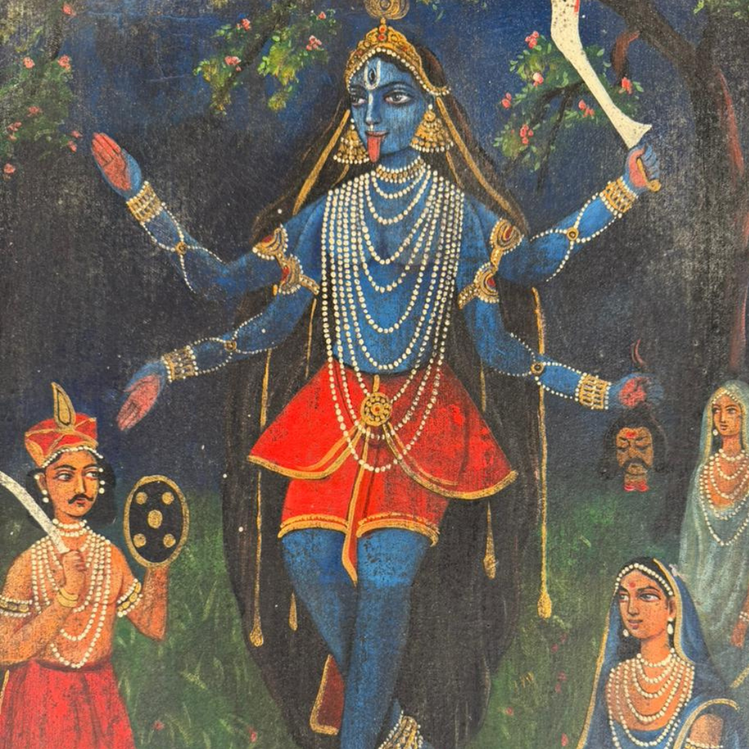 The painting bridges folk devotion and early modern Indian art, created during a time when traditional Kalighat painters were responding to changing tastes, materials, and urban patrons. The result is a work that remains deeply devotional while carrying strong visual presence as an artwork.