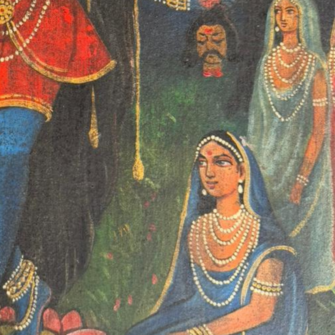 This is an original early 20th century Kalighat painting, created during the later phase of the tradition when artists began working on canvas for a broader urban audience. Variations in line, colour saturation, and surface wear are inherent to hand-painted Kalighat works and should be regarded as marks of authenticity, not flaws.